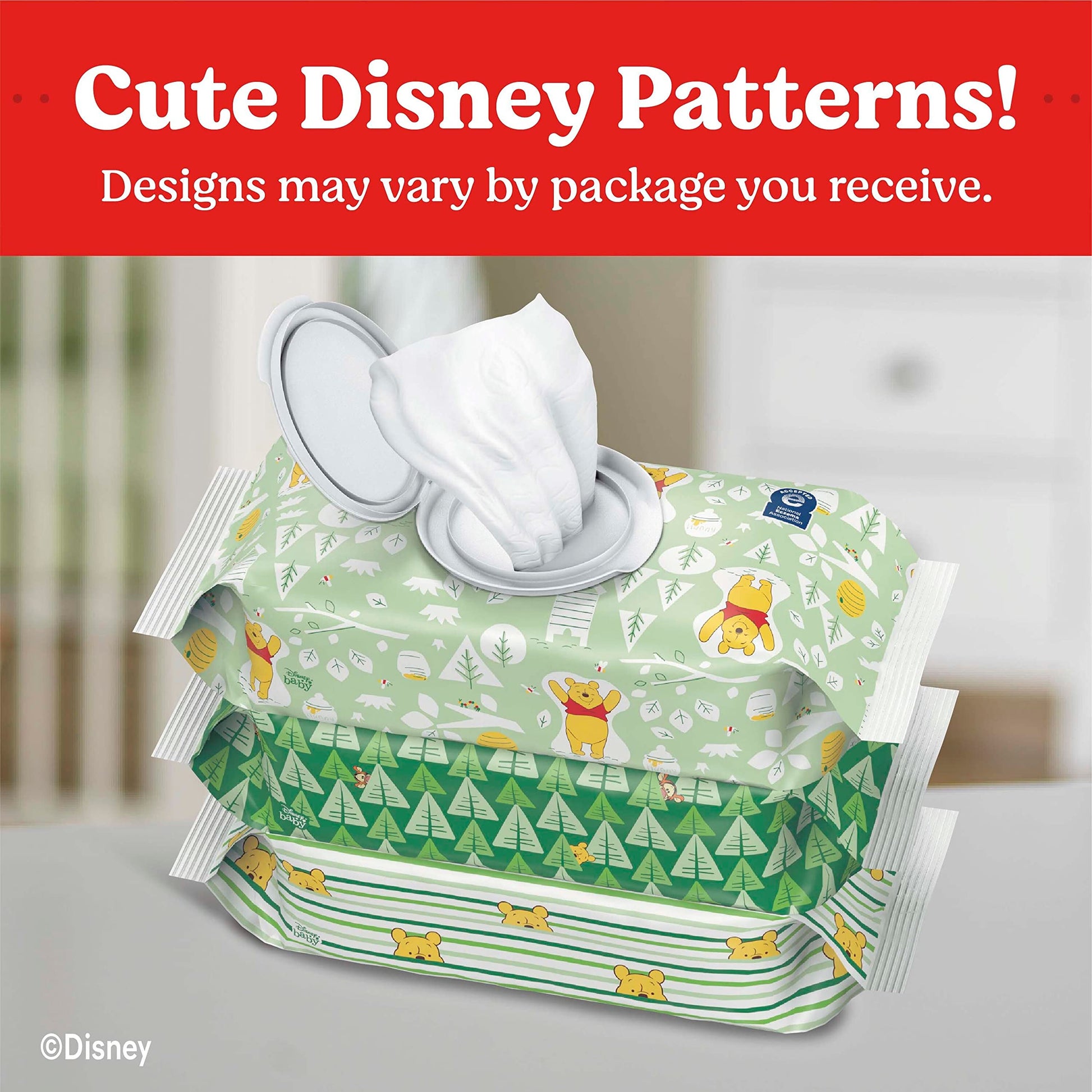 Huggies Natural Care Sensitive Baby Wipes are designed to help keep baby’s skin clean and healthy. Plant-based*(*70%+ by weight plant-based materials) and made with no harsh ingredients, Huggies Natural Care fragrance free wipes are hypoallergenic and dermatologist-tested and the pH-balanced wipe helps maintain healthy skin for your baby. They're recognized by the National Eczema Association and they're safe for sensitive skin and free of fragrance, alcohol, parabens and phenoxyethanol. With the #1 branded wipe**, you can feel confident you are giving baby a safe, gentle clean. Huggies Natural Care unscented baby wipes, with Aloe and Vitamin E, provide a gentle clean for baby’s skin. These disposable baby wipes come in packaging with cute Disney patterns for a delightful touch that will fit in great on your changing table, in your diaper bag and wherever you need a wipe! Plus, with 1-Handed Dispensing, it's easy to grab wipes with a single hand! (*70%+ by weight) (**Based on US Nielsen data ending 9/4/2021)
