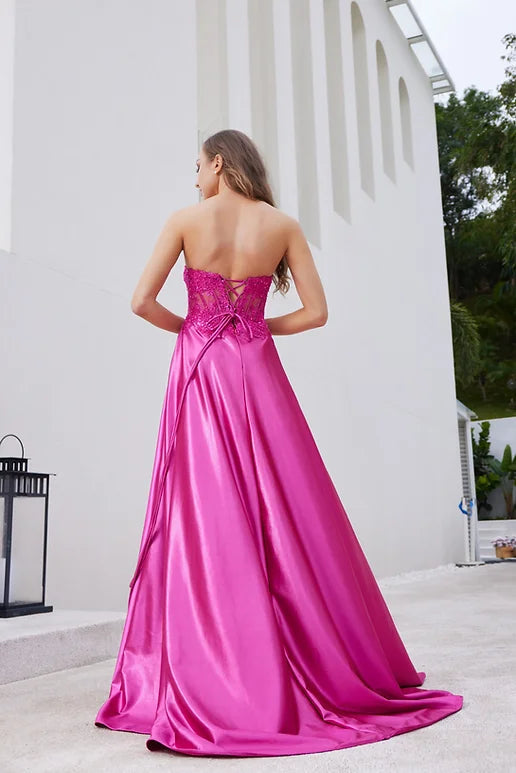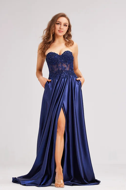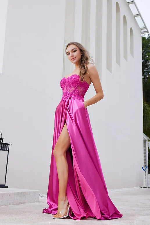 Indulge in luxury with our J23025 prom dress. This elegant ball gown features a stunning A-line silhouette, strapless design, and bold hot pink, navy, and teal colors. With convenient pockets, you can dance the night away in style and comfort. Elevate your prom experience with this exclusive and sophisticated dress.