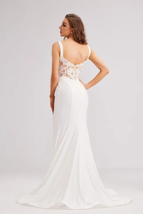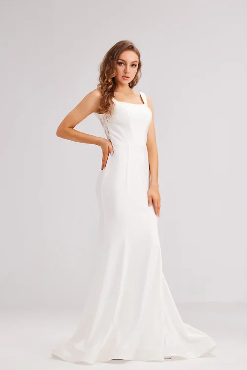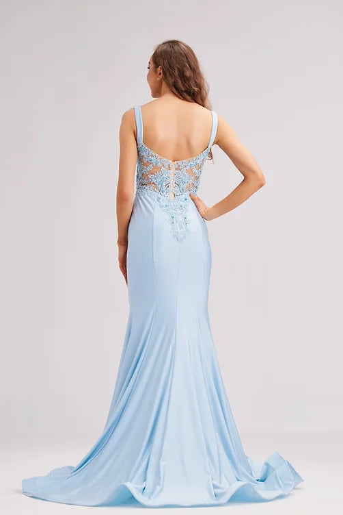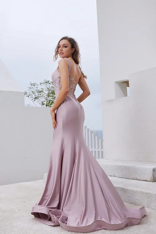 Indulge in luxury with our J23039 dress. Perfect for special occasions, its siren line and stunning colors of Desert Blue, Ivory, and Rose will make you stand out. Elevate your style with this elegant piece.
