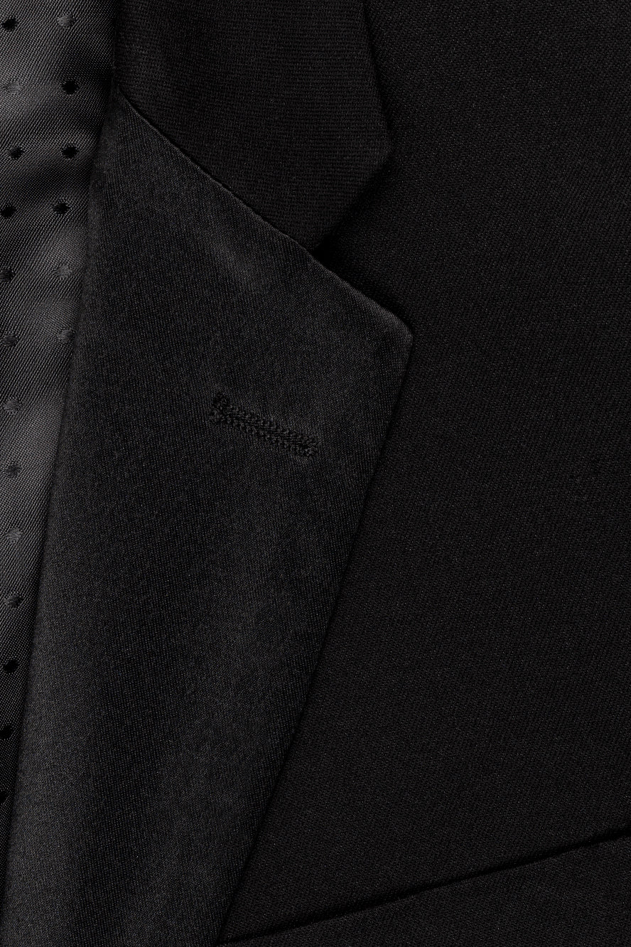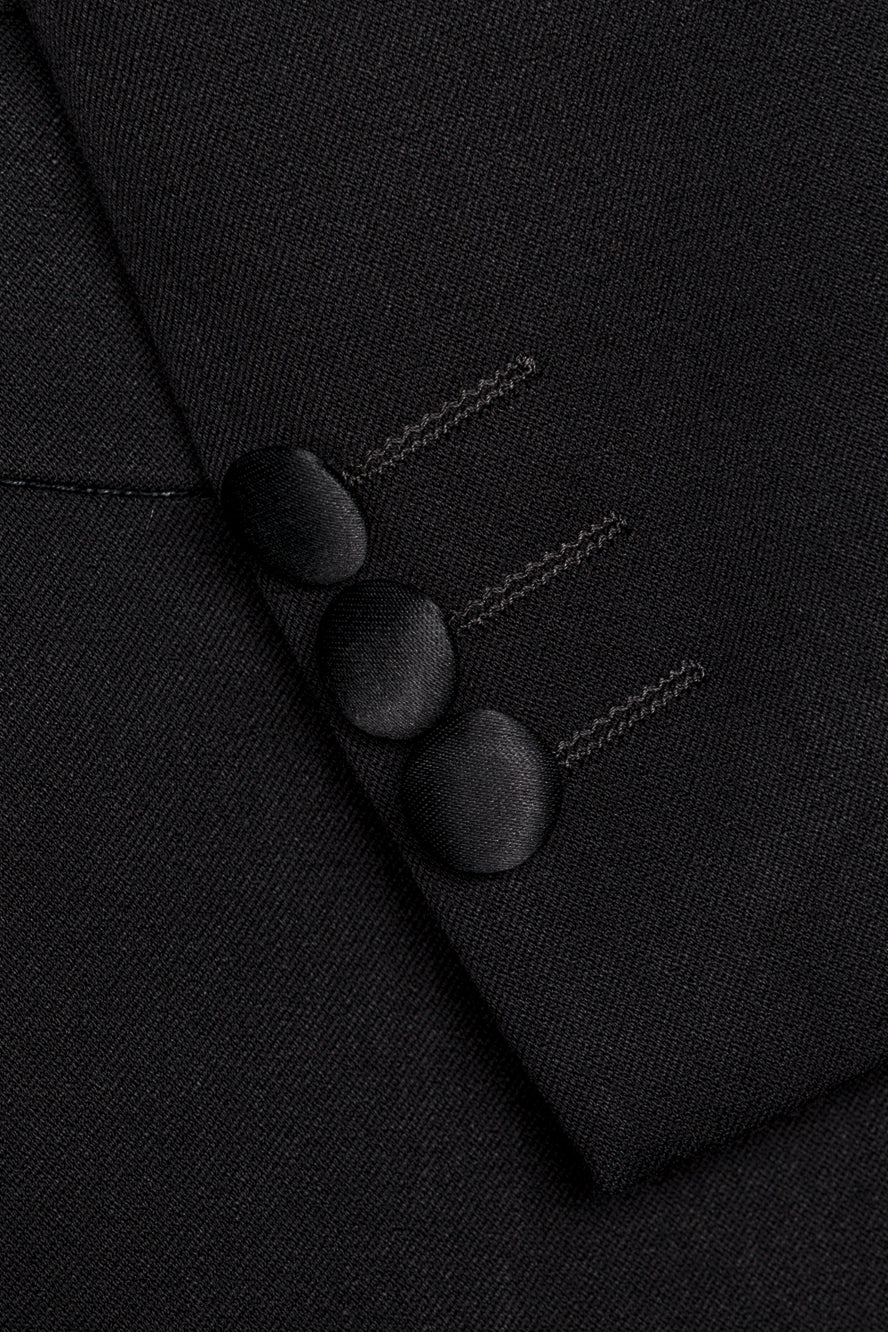 This 5-piece set includes the jacket, pants, shirt, vest and bow tie.