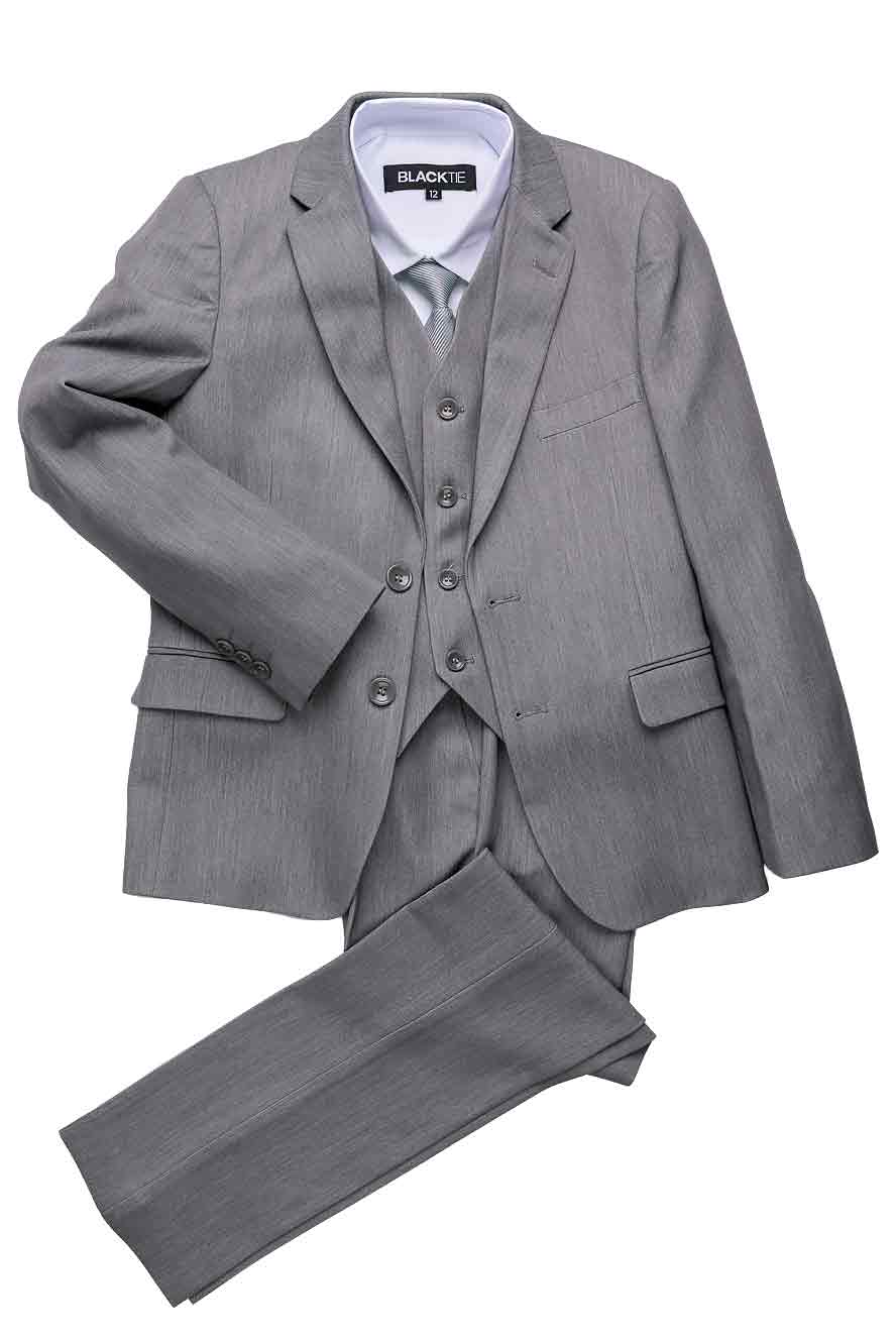 This 5-piece set includes the jacket, pants, shirt, vest and necktie.