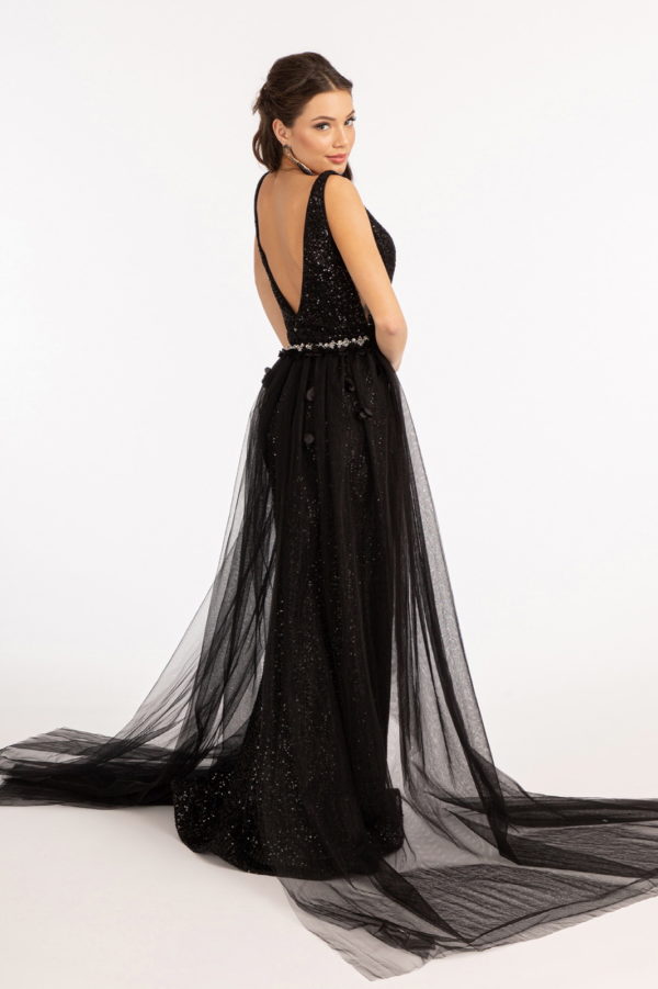 Sequin Embellished Mermaid Dress w/ Jewel Embellished Detached Mesh Layer
