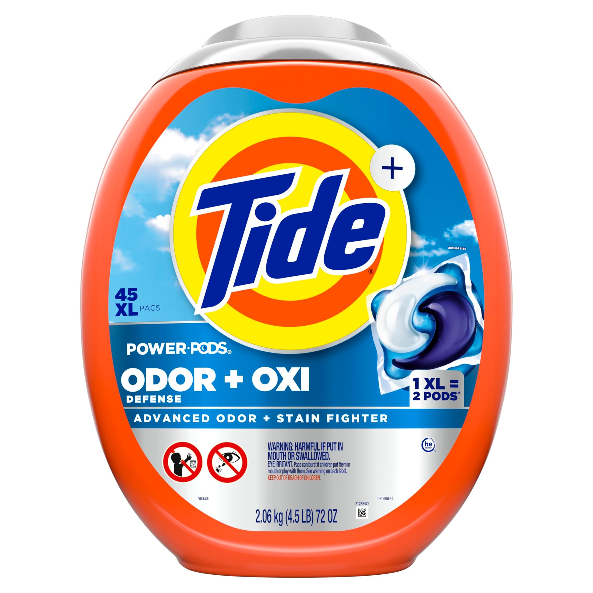 - Includes one 45 Count pack of Tide Power PODS laundry detergent pacs Original Scent Laundry Detergent Pacs